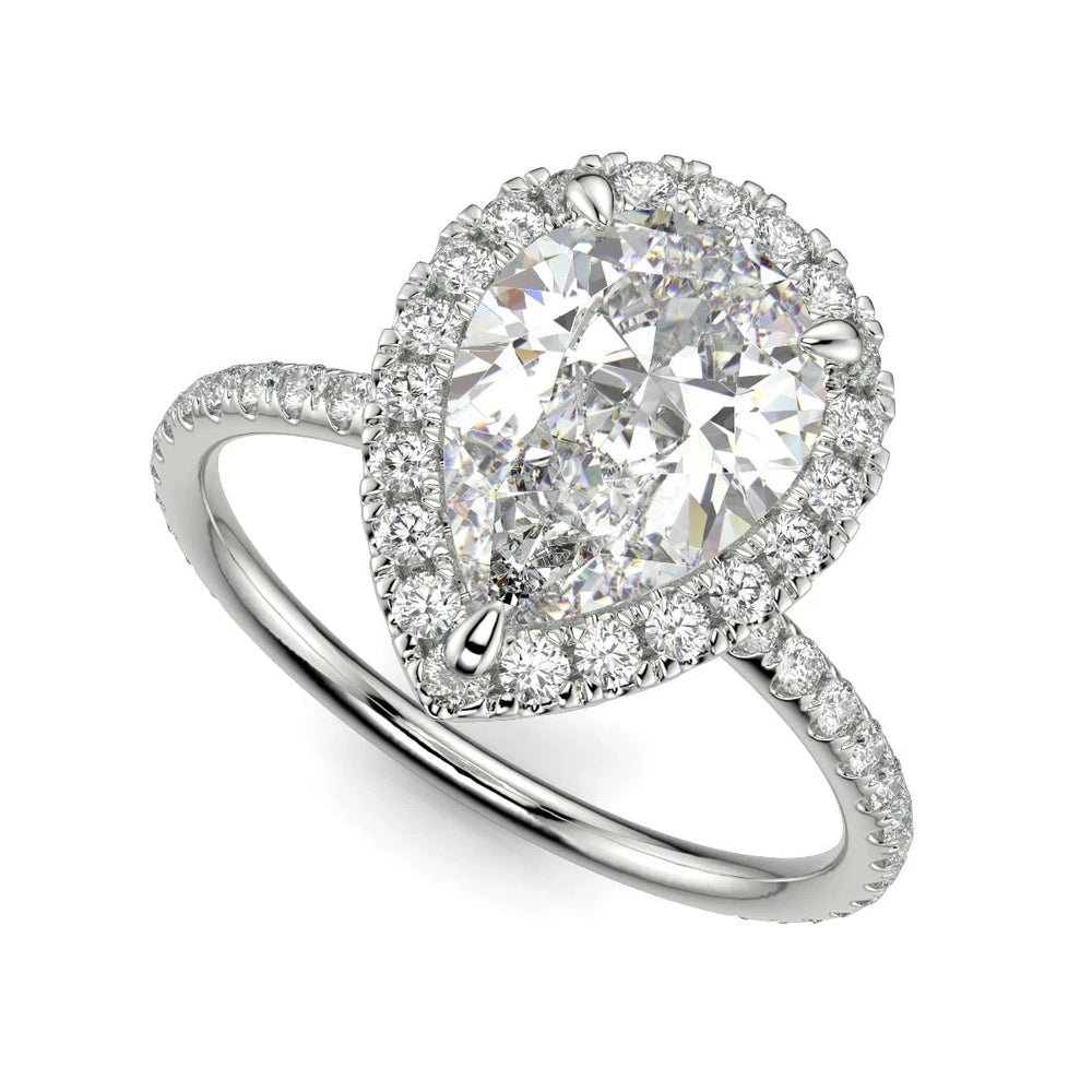 Our 1.75 carat pear-shaped diamond boasts a flawless D color grade and a remarkable VS1 clarity, delivering a level of purity and brilliance that’s hard to match. The 14K white gold setting is nickel-free, designed for comfort, and meticulously crafted to showcase the diamond’s natural fire and beauty. The halo setting enhances the center stone’s brilliance, creating a dazzling effect that turns heads from every angle.