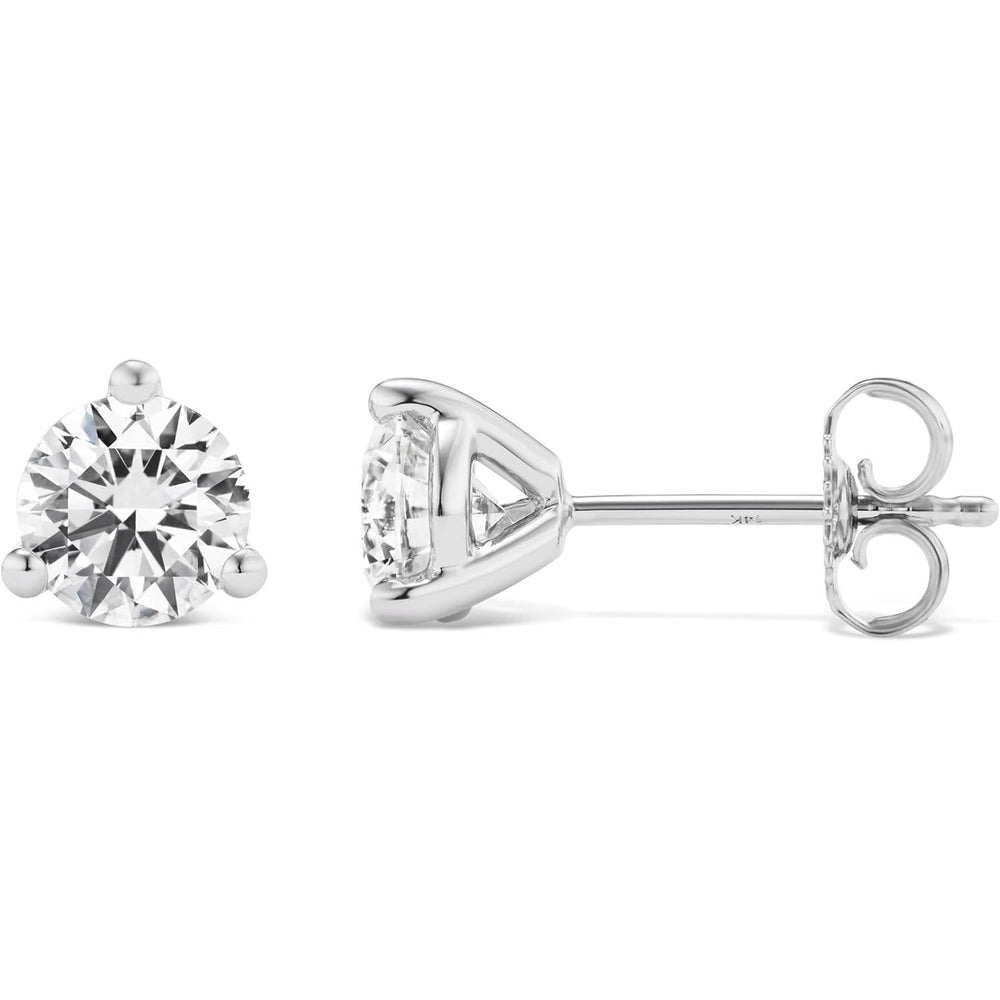 EXQUISITE CRAFTSMANSHIP - Elevate your style with our dazzling 1.50 carat lab grown diamond stud earrings. The classic round-cut diamonds are skillfully secured in a 3-prong martini setting. Crafted in 14k white gold, the earrings offer both a luxurious backdrop and durability, making them a lasting addition to your collection. With convenient push-back studs, these splendid earrings ensure a comfortable and secure fit, allowing you to flaunt them with confidence for any occasion