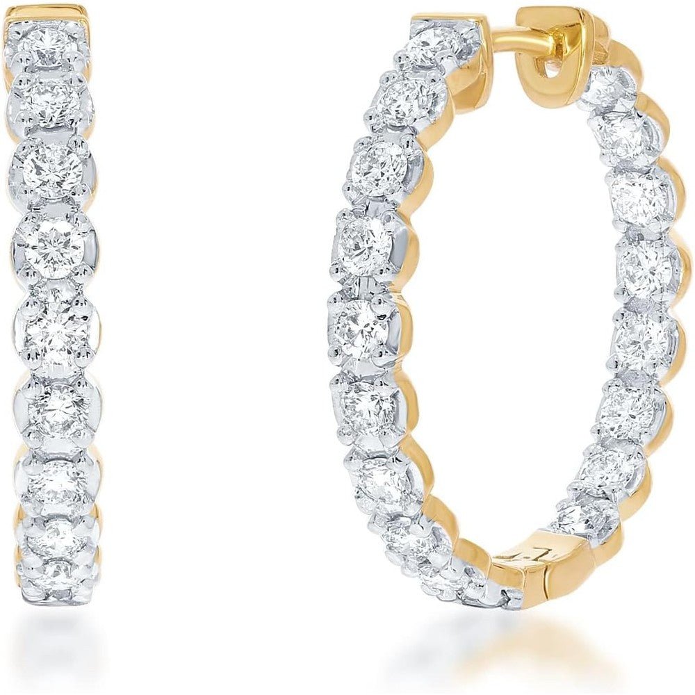 Available in total carat weights ranging from 3/4 carat to 2 carats, these earrings are made to fit your style whether you’re looking for something delicate and subtle or a bolder statement. The diamonds are set inside and outside the hoops for maximum visibility and light performance from every angle.