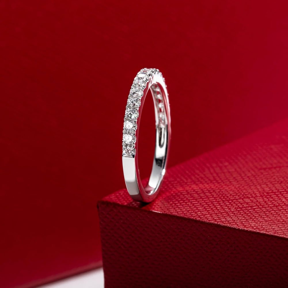 Each stone is cut with precision using the Eight Hearts and Arrows technique, ensuring maximum sparkle and symmetry. Whether stacked with other rings or worn solo, the Celeste Band radiates sophistication in every setting.
