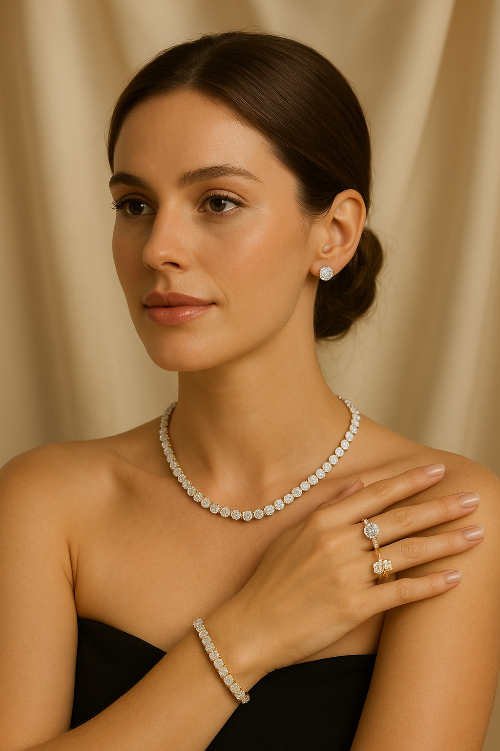 Step into the spotlight with our complete diamond jewelry sets, crafted to turn admiration into memory. Every glance becomes a compliment, every moment a statement. From the soft shimmer of your earrings to the bold sparkle of your ring, each piece works in harmony to make you feel unstoppable. Designed for women who don’t just enter a room, they own it.
